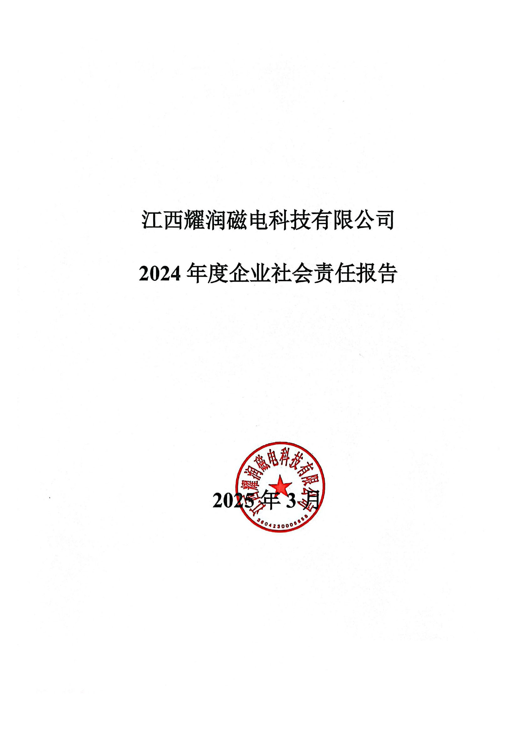 江西耀润磁电科技有限公司 2024年度企业社会责任报告